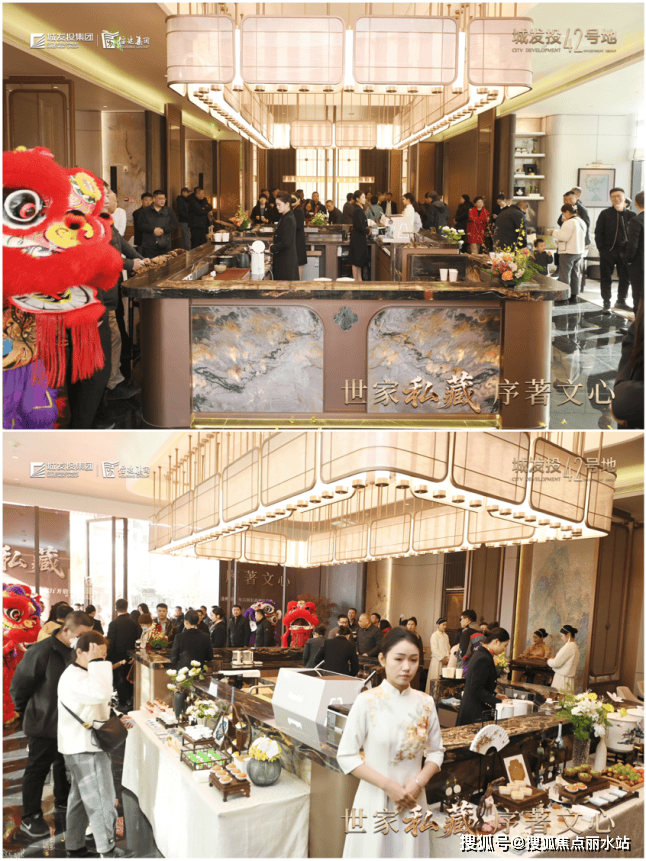 琴韵悠扬,茶香氤氲。城发投42号地立序裕华芯脉,携一城文枢的厚重底蕴而来。为同频土地的厚重与文化的积淀,项目特设希尔顿酒店与槐底双峯层会客厅。其中槐底会客厅将承载高端休闲、圈层沙龙等功能,并臻选多款私藏茶品以供品鉴,致力于实现与高端人士的思想共鸣。与会领导共同剪彩并为祥狮点睛。伴随着激昂的乐曲声,祥狮登高祈福,会客厅正式开放。