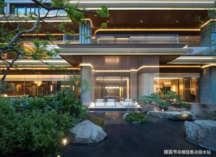 金茂府进一步将场地最大高差延展至约12米,并创新构筑“经纬光厅”。