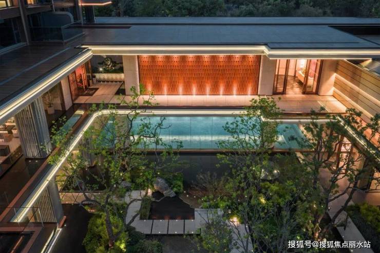 江宁金茂府的下沉庭院,植入了1000余株成熟乔木,其中更包含珍贵的生货乌桕与香樟。以林木勾勒山势起伏的肌理,将造景的艺术境界,再度推向新的高度。