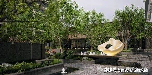 园林与归家动线方面,三重五景园林设计,融入水景、艺术装置,大门隐奢气派。
