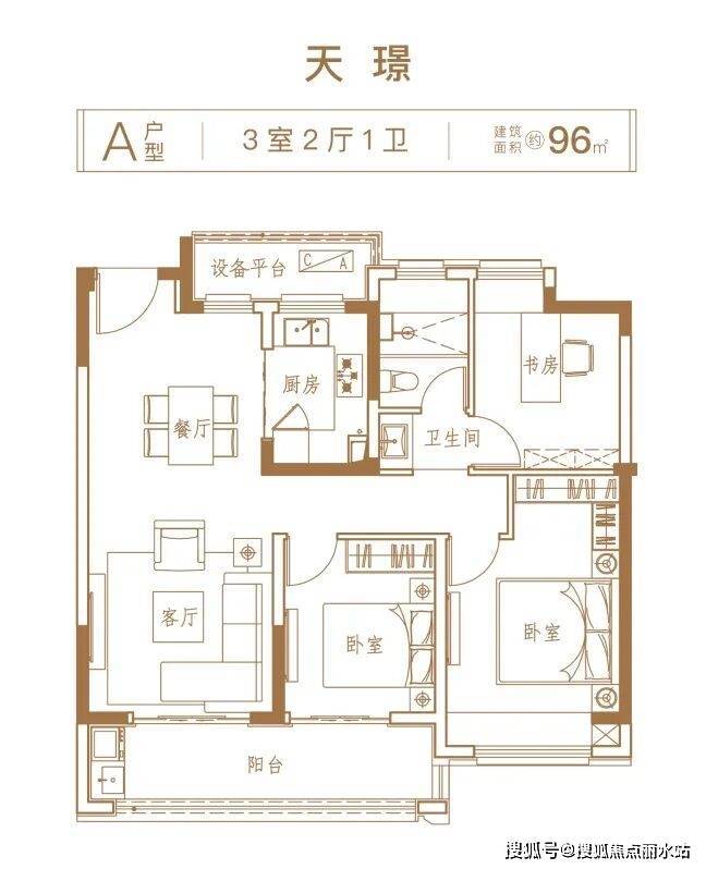 96平米户型方正实用,功能齐全,3开间朝南,采光最大化同时保证了通风效果。