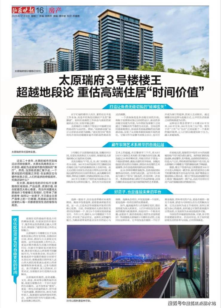 在太原,高端住宅的评价标尺主要围绕区域地段、产品品质、资源价值、综合配套四大核心维度。而当华润置地太原瑞府3号楼楼王亮相时,它带来了新的思考:如何让一处房子,不只是业主资产清单上的一行数据,而是能让居住在这里的人每一天都感受到生活的愉悦与高效。