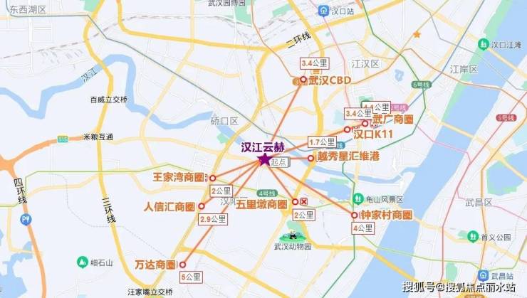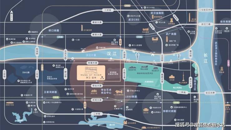 项目与汉江的直线距离仅100余米,踞月湖桥桥头堡,与汉口核心仅一江之隔。武广、K11、武汉CBD等城市核心商圈,过个桥就到。