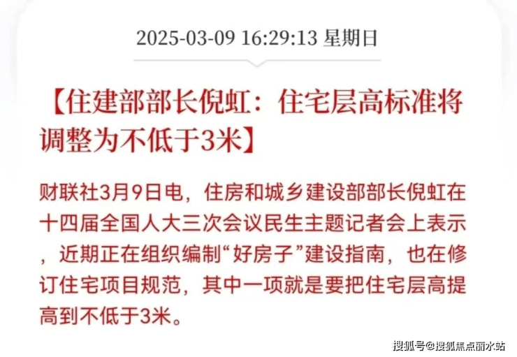 而在今年5月1日,住房和城乡建设局发布了“好房子”新国标——《住宅项目规范》,明确提出新建住宅建筑层高不低于3米,为提升居住空间舒适度画下了底线。