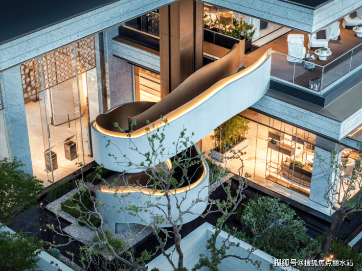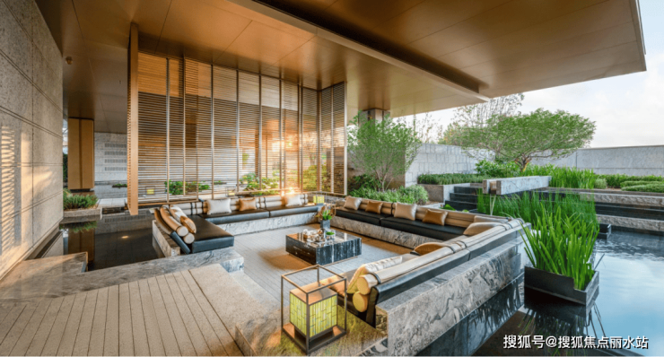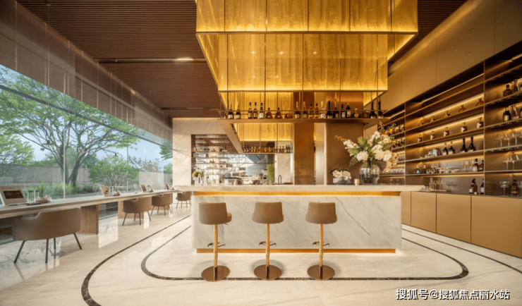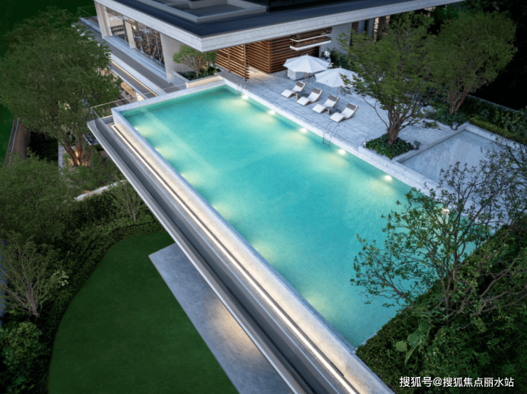书吧、私宴厅、女王空间、健身房,功能空间丰富多样,所有的场景几乎都做了大面落地窗,沿窗或是做了轻盈的植物搭配,或是全景视野瞰江,还有灵感来源于迈阿密、新加坡高奢度假酒店的无界悬挑泳池,彻底消除了自然与建筑的壁垒,营造沉浸式度假体验。