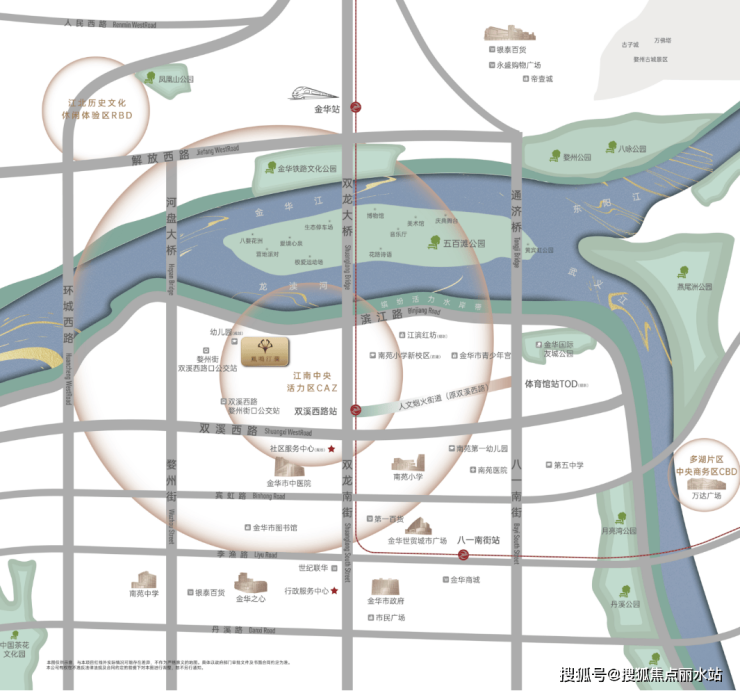 其二,凤鸣汀澜地处江南双溪西路片区,是未来江南CAZ“中央活力区”核芯区域,集商业商务、文化创意、现代活力于一体,是浙中都会新地标。