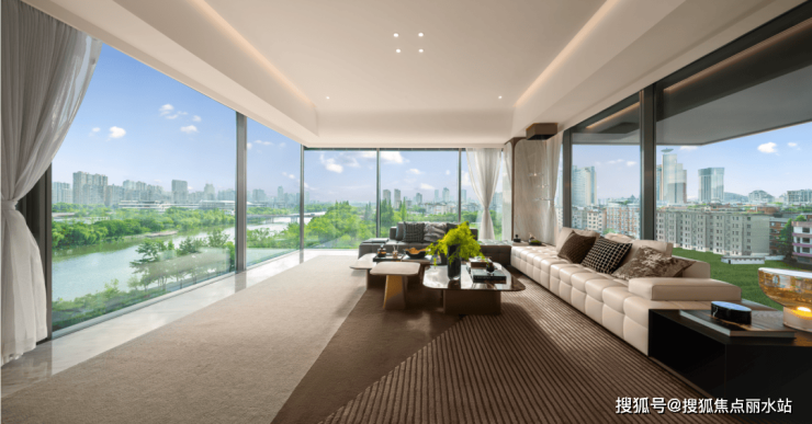 这样巧妙的布局,配合室内LDKB一体化空间和270°全景舱转角无柱设计,真正实现环幕观江瞰景。