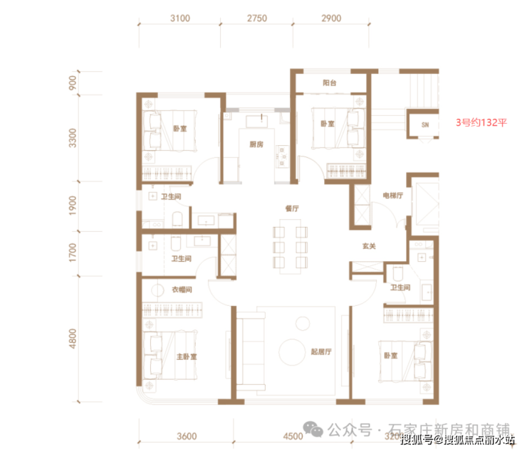 11.通过四叶草格局、南向双主卧套房、配备阳台等细设计,为每家人的独立与共融找到完美的平衡点。