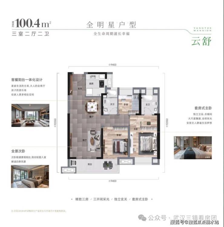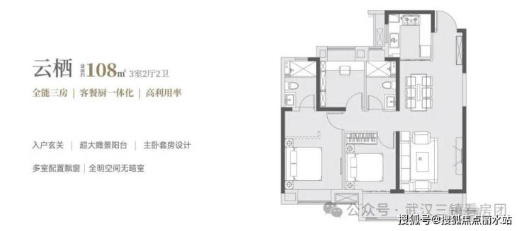 约108㎡【3房2厅2卫】双卫设计,高利用率,空间更阔绰