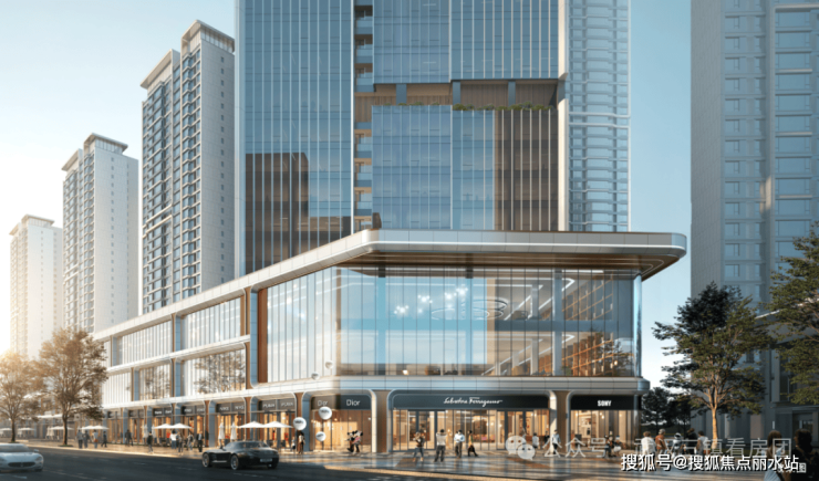 ▶以LOW-E玻璃+质感铝板+香槟金铝合金线脚玻璃幕墙形成现代美感外立面。
