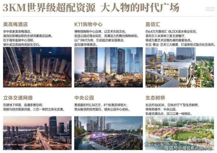 项目三公里范围内二七滨江国际生活区,已营业有武汉天地、壹方南馆、壹方北馆,在建的有首个国际滨水文化商街—嘉佰汇,周大福金融中心K11等,沿解放大道即达顶级武广商圈和万象城商圈,同时项目自带约1万方商业。