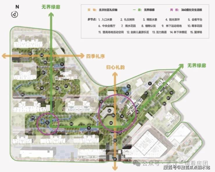 🌳双轴:精致水景艺术主入口,串联礼仪树阵主轴。