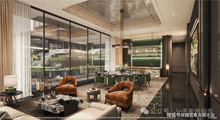 设计师以东方摩登韵味打造双重下沉庭院,以高规格规划约4000方会所,集月华阁、健身中心、私宴及共享餐厅、行政酒廊、瑜伽馆、壁球馆、室内全龄恒温泳池为一体,以及高层全架空主题空间,完善全龄乐动的生活体系。