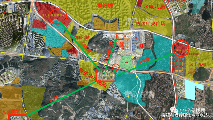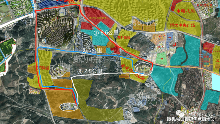 到小学的距离更较远,目前的车行,只能走百花大道,北京西路、惠源路等,距离达6.6公里;近两年,马王路西段通车之后,走第二条路,也有5公里的距离;即使三马片区所有规划路段通车之后(尤其是普杨路、金阳南路延伸段通车之后),最短距离也要2.5公里。看下图: