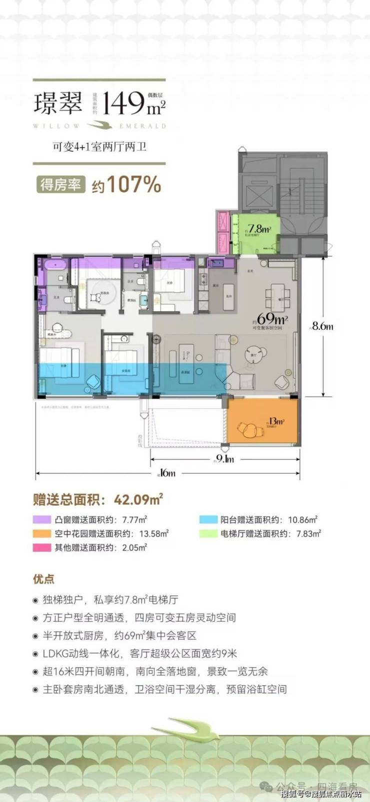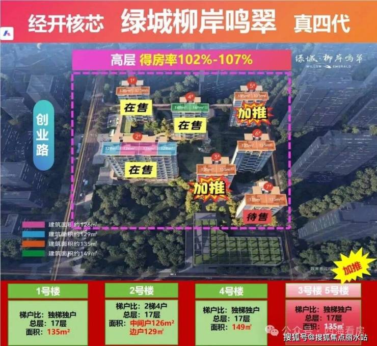 🟢建面约126-129-135-149㎡小高层🉐得房率102%-107%,负公摊,户户带私家庭院!