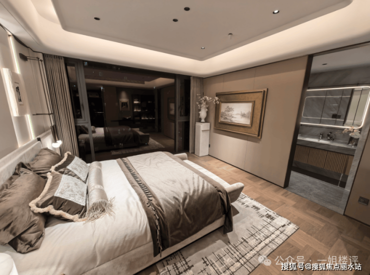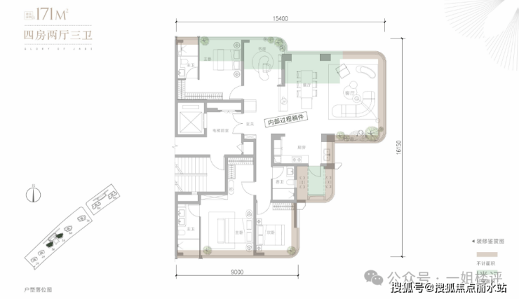 可以看到,该项目每个户型都有不错的观江面,而且客厅基本都是全景舱设计,整体的爽感很强,但是部分主卧套房紧邻电梯井算是个BUG,建面约171平的主卧大套房看不了江。