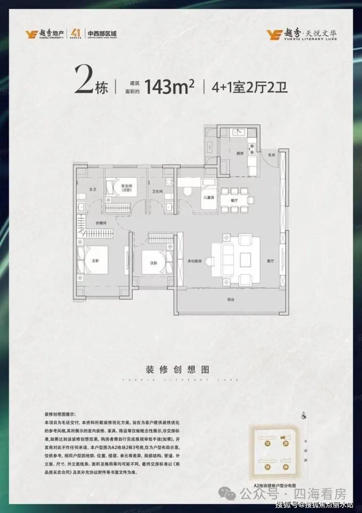 5、户型设计非常好!小区首推的3个户型中,108平方方正正的很实用,大户型设计非常亮眼。128平做了4房设计,客餐厅连接起来做了大横厅,主卧面积也非常大,143平米,有超大南向开间,做了4+1设计,灵活多变,也非常好。