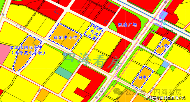 3、南面规划中小学教育用地,教育资源也不错!在小区南面地块是硚房集团的地,规划有中小学用地,附近还有汉江湾国际高中(武外英中学校),在家门口可以实现目送式教育。