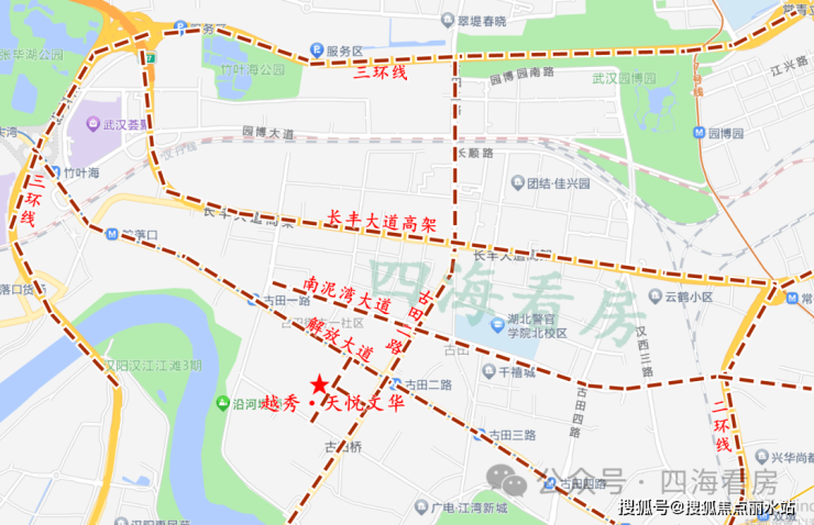 自驾:项目门口就是古田两大重点主干道,古田二路和解放大道,古田二路向北可至三环线、东西湖,并连接长丰大道高架,上二环线,向南可至汉阳;解放大道可上二环线和三环线。另外区域在改造南泥湾大道,建成后可以直通泛海中央商务区。
