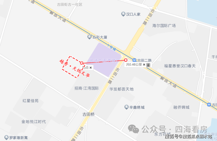 越秀·天悦文华位于古调路与田正街交汇处 ,在楼市划分中属于古田二路板块,行政划分属于硚口区。