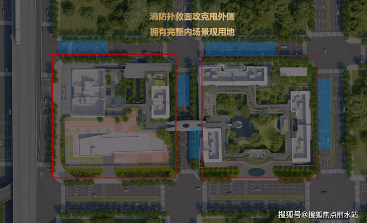 不得不承认,项目一诞生就面临着地块小且分散的巨大挑战,大部分开发商会选择“躺平”,可新希望·D10天元坚信“我命由我不由天”,大胆创新,在满足消防安全规范的前提下,将消防登高场地置于红线外,更大限度的保证了社区内空间的完整和统一!