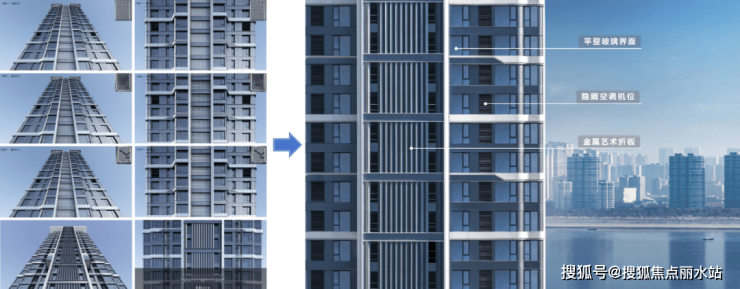 又如,我们认为已做到极致、近乎“零管线”的曲线外立面,开发商在反复观察、考量后,觉得北立面采用平面铝板+玻璃全包有点“单调”,在施工大半的时候拆掉重来,才有了现在立体感更强的折线造型,成就了全武汉外立面的颜值巅峰!