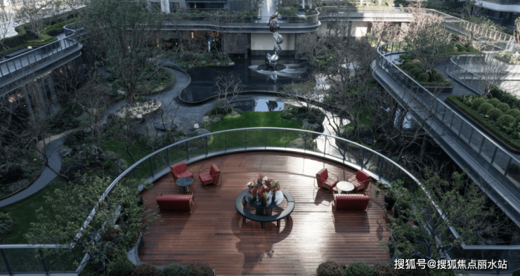 → 纵向看,立体的“浮岛花园”打造出垂直园林体系,还原了曼哈顿High Line公园生活。