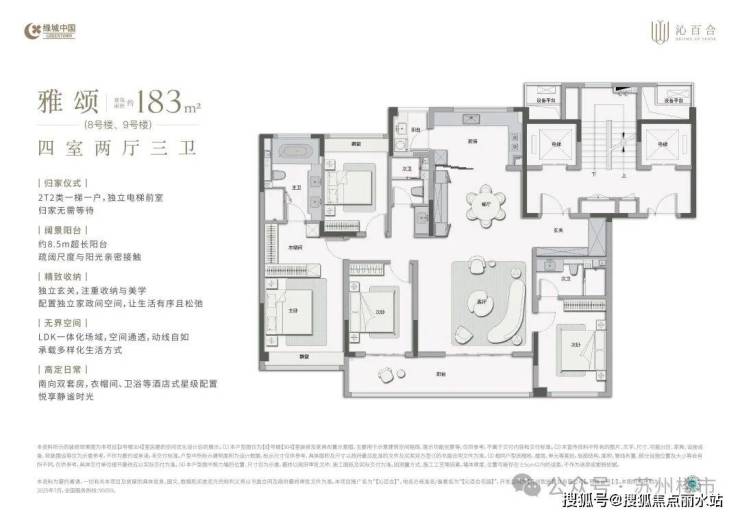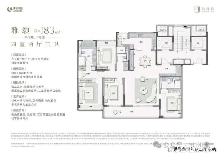 在户型设计上,沁百合规划了建面约155/167/183/230㎡四大主力户型。全户型4房2厅3卫设计,每个卧室开间3米以上,保证了居住的舒适度,公区也是足够奢阔,实现家庭生活的N种可能。