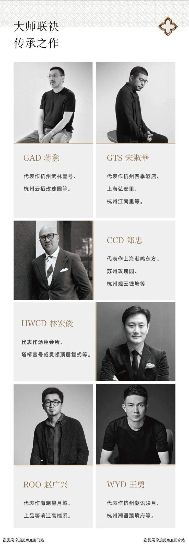 建筑、景观和室内三大板块,滨江分别诚邀gad高级合伙人蒋愈、蓝颂景观总经理宋淑华、HWCD董事总经理林宏俊、ROO创办及合伙人赵广兴、WYD合伙人王勇、CCD创始人郑忠六位大师执笔,以国际视野和顶豪基因,打造可传承的都市藏品。