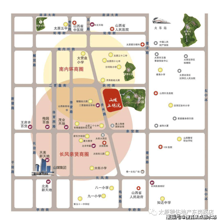 2、商业:长风亲贤商圈整个区域商业商务业态非常完善,太原70%的高端商业商务云集