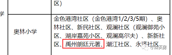 不过,根据2023年最新划片显示,禹洲朗廷元著对口小学为奥林小学,以及官士墩中学