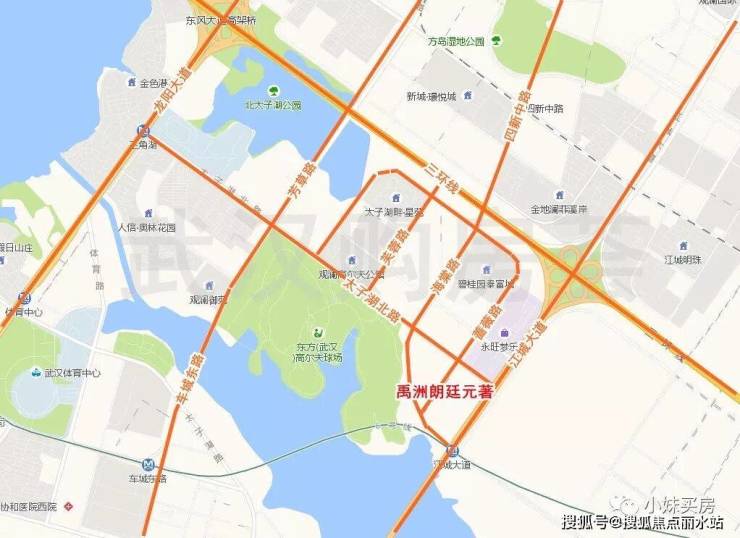 禹洲朗廷元著从大区位上看,位于武汉经济开发区北侧,靠近三环线。具体位置位于江城大道与太子湖北路交汇处。
