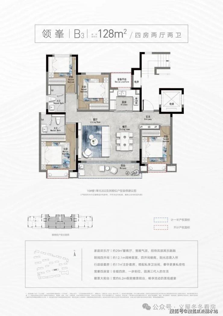 【建面约128㎡(B1)四房两厅两卫】