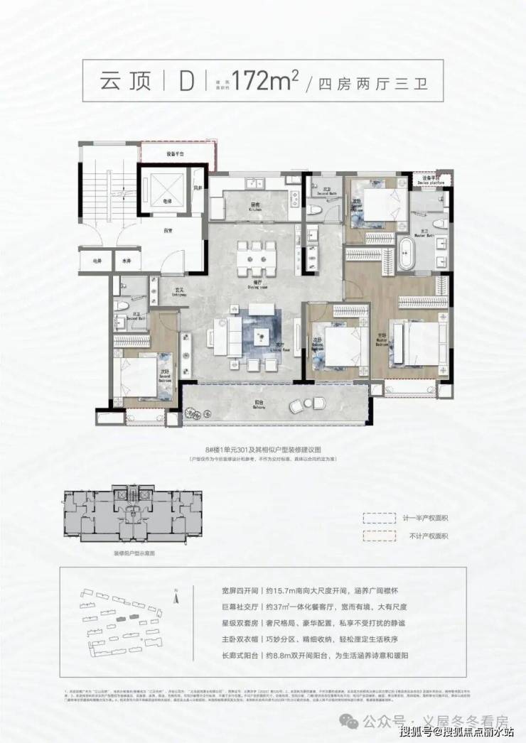 【建面约172㎡(D)四房两厅三卫】