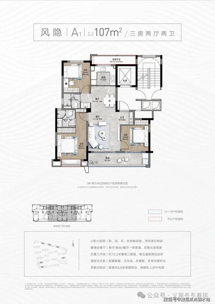 【建面约107㎡(A1)三房两厅两卫】