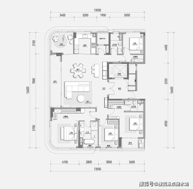 ③经过第三次打磨的经典户型,分别是建面约188-220-280方,惊喜的超高得房率。