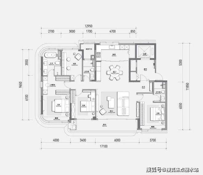 一、建面约188方四房两厅三卫: