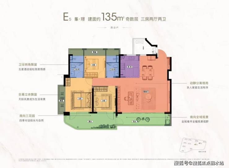 但这,仅仅是个开始。更劲爆的,是它前不久开放的135㎡实体样板间——自带约6米挑高弧形全景露台(仅限偶数层西边户)、超级大方厅、海量飘窗赠送……把“超配”打在公屏上!