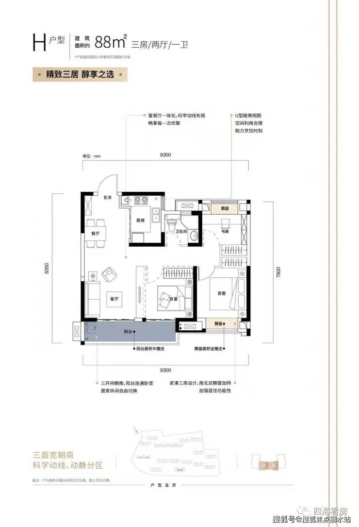 产品:建面约88-118㎡舒适空间,约6米奢阔大阳台,3米豪宅层高尺度。精工毛坯小三房,性价比首选