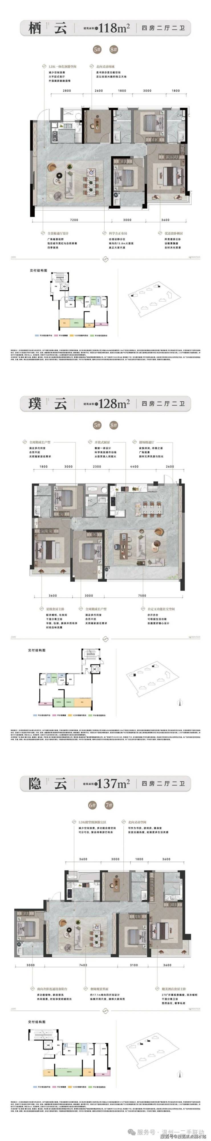 深研城市菁英的人居需求,打造建面约89-137㎡谧境高层和建面约145-174㎡顶墅跃层,注重户型的⽣活性与实⽤性,通过LDKB⼀体化、可变空间、整体收纳、全景主卧等设计,契合家庭成员每个阶段的生活需求,提升空间的居住体验和居住价值。