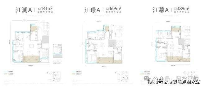 无论是建面约141平还是建面约189平,均为2梯2户,均带电梯前室,均做到了功能型四房设计!