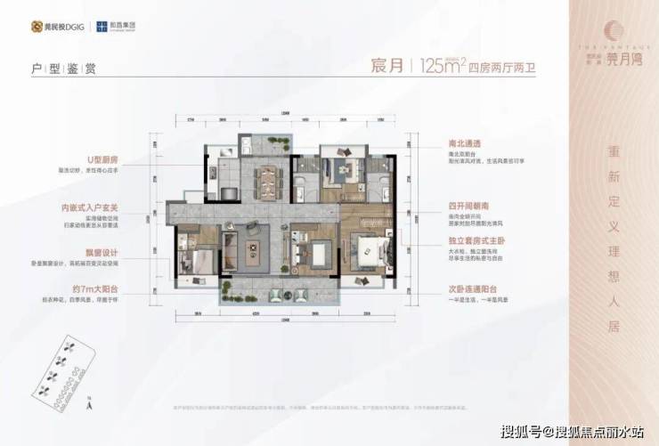 令人欣喜的是,125㎡户型是南北双阳台设计,南向阳台长约7米,南北通透,可令阳光满屋,清风贯堂,舒适度直接拉满。