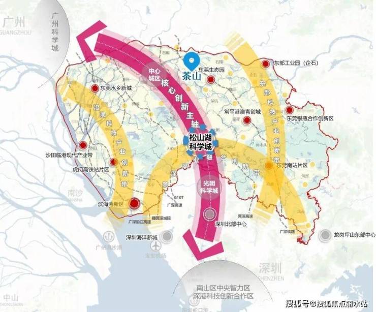 茶山紧邻东城,同时隶属松山湖片区,处于主城区和松山湖两大核心发展级的黄金位置,长期承接这两个区域的人口、产业外溢,同时享受东莞核心创新主轴的发展红利,区域未来的发展潜力不容小觑。