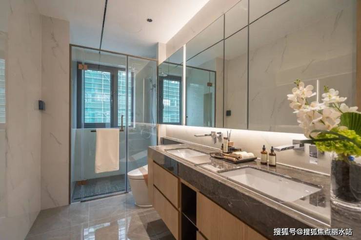 当然还有超级主卧体系。主卧面宽超大,留有浴缸、双台盆、衣帽间等区域,再配约7x2m假日阳台,单是这几项配置让很多叠墅相形见绌,无论是采光通风还是空间的尺度,都无可挑剔。
