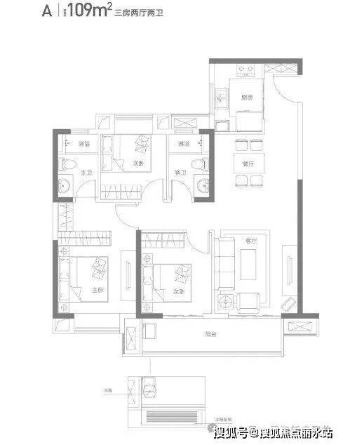 建面约109平 三房两厅两卫