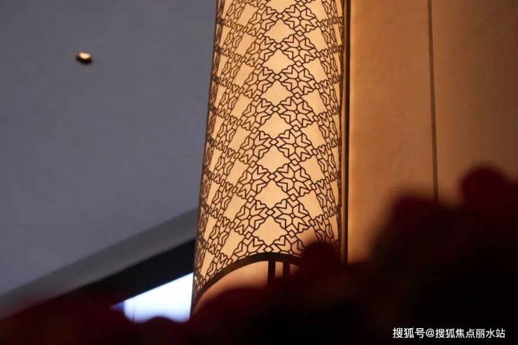 墙面用利落线条勾勒空间轮廓,弱化多余装饰,让视觉焦点集中在天花板设计 —— 这里深度复刻正定古城开元寺钟楼的经典肌理,那座被梁思成赞为 “金元前独存的建筑瑰宝”,其庄重气韵通过现代灯光与材质重新诠释,既保留古建的历史厚重感,又契合当代审美,为下行至负一层的动线铺垫尊崇氛围。