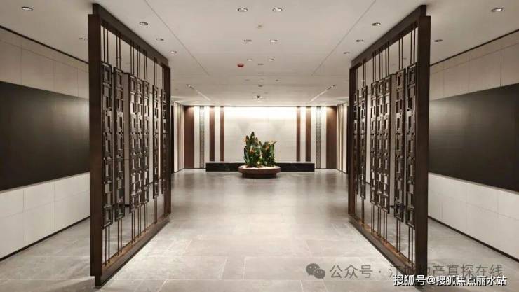 进入地下大堂落客区,内部岩板、木饰面的拼接组合,有着星级酒店般的呈现。