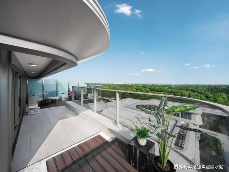 传统项目外立面多采用窗墙体系,窗洞口明显,立面凹凸不平整,而奥体潮鸣采用了极限的窗墙比,以270°弧幕观景阳台搭配大幅落地玻璃窗的设计,就像在太湖边打开了“超宽屏取景器”,将太湖框为日常景观。