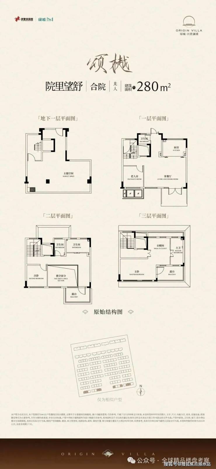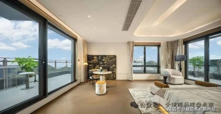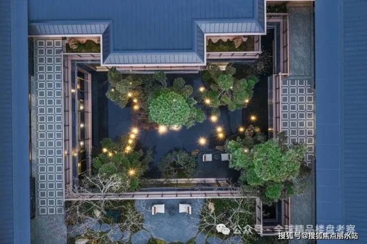 约360㎡合院做到约10.8米面宽,层层都是3面宽,一楼带花园、二三楼带空中露台,顶层一整层做五星级酒店式套卧。