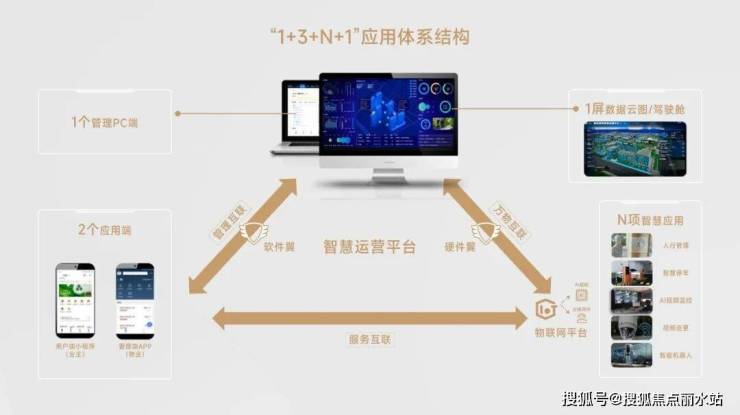 具体说来,由开发商斥重金统一建立社区智能化平台,并以此为枢纽,搭建1+3+N+1智能化应用体系结构。相当于为社区植入一个“超级大脑”,不仅能够提供服务,更能根据业主对服务的反馈,全面优化服务。